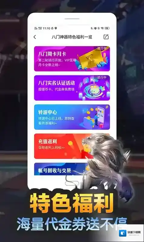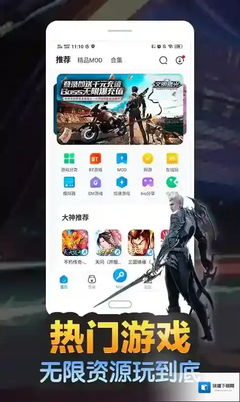 2、BT游戏:BT游戏能让练级更轻松,游戏更畅快。上线送钻石,元宝,金币、VIP等级,八门神器还会保持每天更新当下热门传奇、仙侠、魔幻、修真、卡牌、三国等BT游戏;