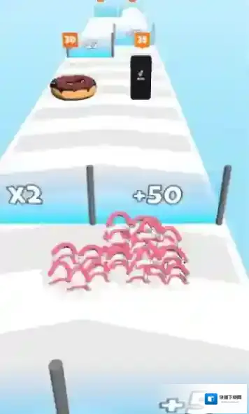 1、精准走位技巧:提前预判障碍物运动轨迹,通过连续滑动屏幕实现快速变向,在狭窄的安全区域中穿梭,保证收集牙齿与躲避障碍两不误。