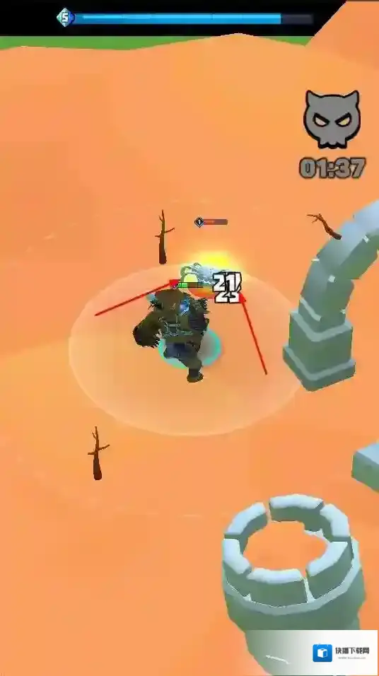 3、“猎杀怪物”,利用技能和武器,攻击并消灭怪物,完成关卡,获取奖励升级。