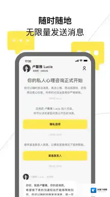 在你特别需要帮助的时候,哪怕是白天的8点,晚上的12点,凌晨的3点,你都可以进入私人咨询室,准确地写下你的感受,让咨询师更加了解你任何时候的状态,找到最佳的咨询方案.每天不限制咨询时长,这样你就可以从咨询中获得最大的收益.
