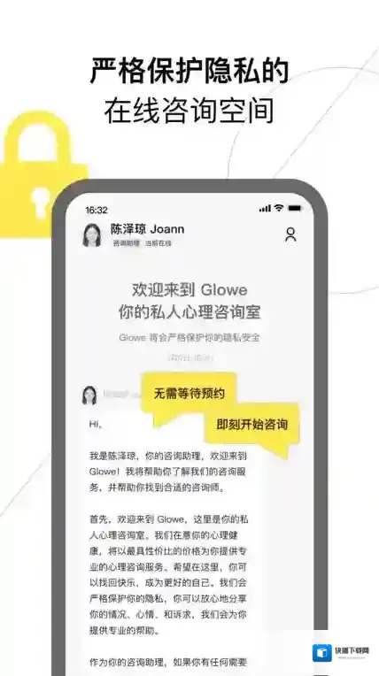 glowe心理咨询是一款非常人性化的心理咨询平台,界面简约,功能有针对性,根据用户的需求提供专业实惠的咨询服务.没有太过复杂的流程.用户可以直接进入咨询室,解决你的所有心理咨询.