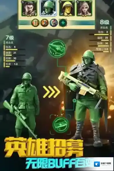 3、兵种与战术策略:兵人出击战力强劲,多样兵种组合搭配能大幅提升实力,升级兵种可进一步增强战力;战斗前需洞悉对手兵种类型,做出合适战术安排。
