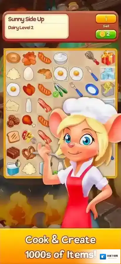 1、食材合成解锁:从基础食材开始,将两个相同的食材两两拖拽合并,生成更高级的食材;随着合成的深入,逐步解锁稀有食谱与烹饪工具。