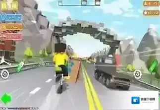 1、积木美学的视觉体验:低多边形方块建模搭配明亮色彩,摩托车、障碍物与场景均以积木元素呈现,动态光影增强立体感,营造清新治愈的视觉氛围,适配碎片化休闲场景。