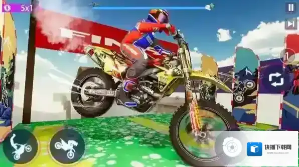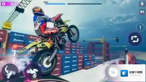 3、技巧进阶提升:逐步挑战高难度特技组合(如连续空中转体+落地漂移),通过反复练习操作细节,提升特技完成的流畅度与精准度,成为真正的摩托车特技高手。