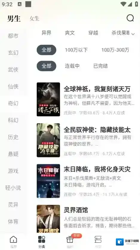 2、海量正版图书资源,涵盖网络文学、经典名著、小众作品等各类题材。