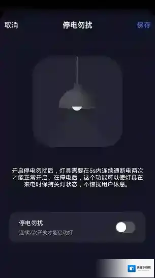 开启停电勿扰后, 灯具需要在5s内连续通断电两次才能正常开启。在停电后, 这个功能可以使灯具在来电时保持关灯状态,不惊扰用户休息。