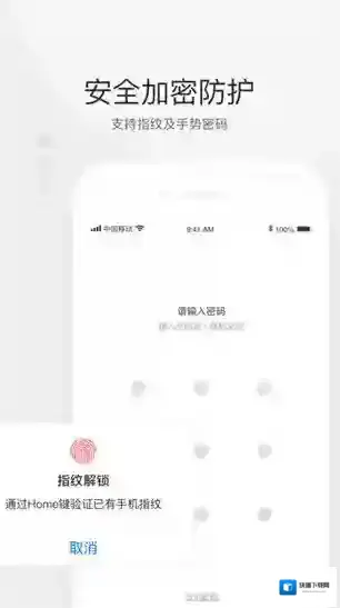 3、安全加密防护,支持指纹及手势密码
