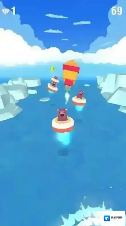 2、闯关时,持续左右滑动操控,避开冰块障碍,收集蓝色宝石,保持堆叠稳定,推进关卡进程。