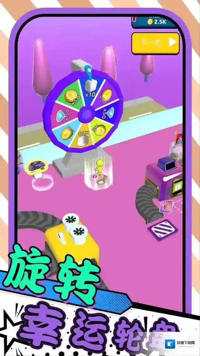 3、通关后,点击箭头指向的轮盘位置参与抽奖,获取金币、道具等奖励,用于提升角色或解锁新内容,再点击“下一关”继续挑战。