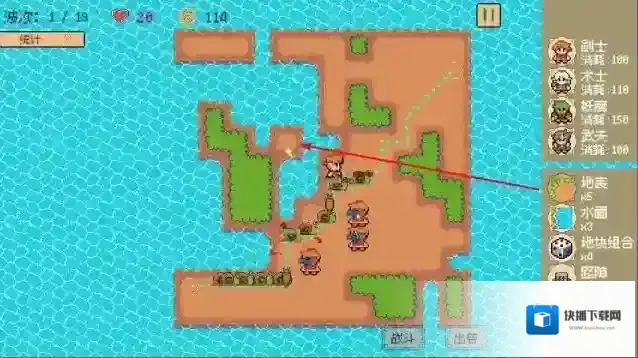 3、“波次防御”,应对1-19等多波敌人进攻,根据战况调整兵种,坚守岛屿,完成关卡。