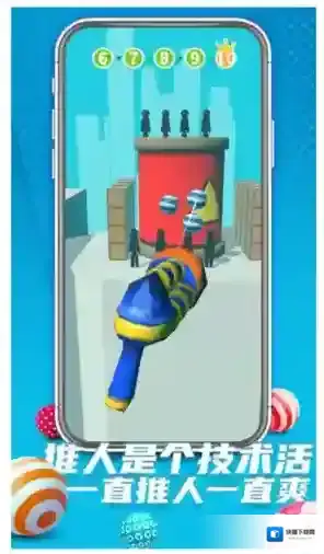 1、简约明快的视觉呈现,采用扁平化设计和柔和色调,营造轻松舒适的游戏氛围。角色动作流畅自然,击飞特效夸张有趣。