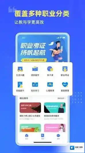 – 提供的知识内容非常的全面,语言学习、亲子课程、职业考证、心理教育、家庭教育等等;