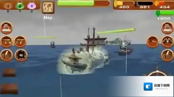 2、指挥战舰作战:操控战舰参与海战,利用望远镜侦察、预判攻击、躲避炮火,在舰队对决中发挥指挥才能,击败敌对海盗势力。