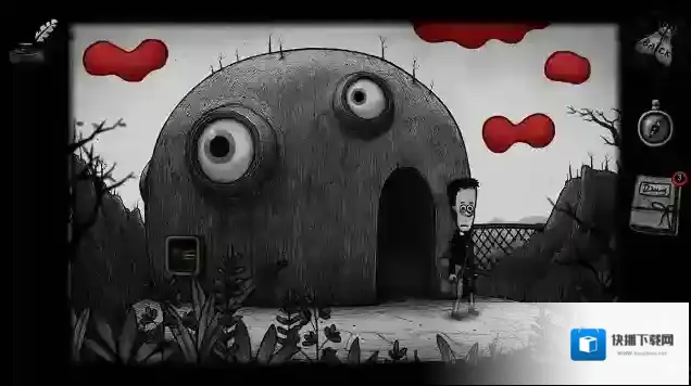 3、游戏的黑白手绘风格营造出了浓厚的诡异氛围。从进入游戏时大厅中央那对转动的眼球,到后续出现的巨人轮廓和墙面手印,每个视觉元素都在强化着不安感。