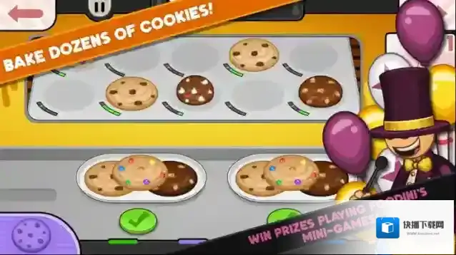 4、根据屏幕右侧显示的菜单,首先选择制作饼干。选择好饼干的种类后,别忘了为饼干添加上顾客喜欢的配料。