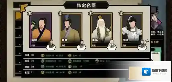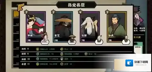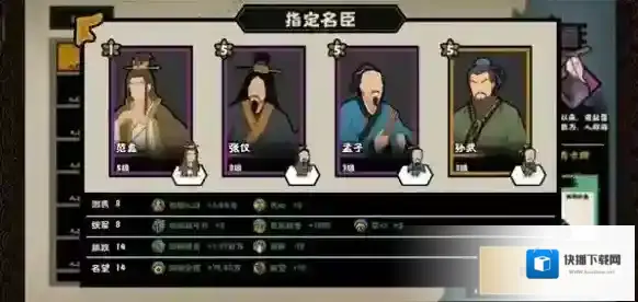 最开始的名臣选择一定要谨慎,因为刚开局的战斗基本没有太大的变化,主要就是依赖前期四个名臣提供的数值加成,因此一定要选择等级比较高的。