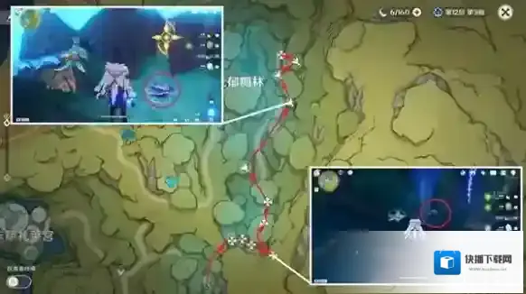 降诸魔山洞窟:大部分位于上层平台或藤蔓上,可借助四叶印快速收集,数量6,推荐指数★★★★。