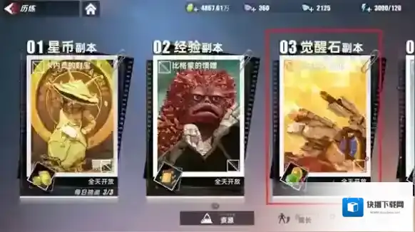 2、进入觉醒石副本后,玩家会遇到三个不同属性的副本。