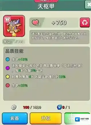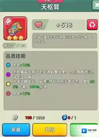 装备品质从白色到红色,品质越高,技能越多,割草速度越快。