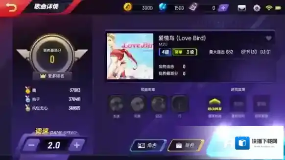 当然在一开始的时候最慢的速度都会觉得反应不过来,当万到一定的程度的时候熟悉之后就不会有这样的感觉了。游戏中还可以调节音符下落的速度,总共有四种速度,x4的速度是最快的,当然想要玩的更刺激,那就选择最快的速度。