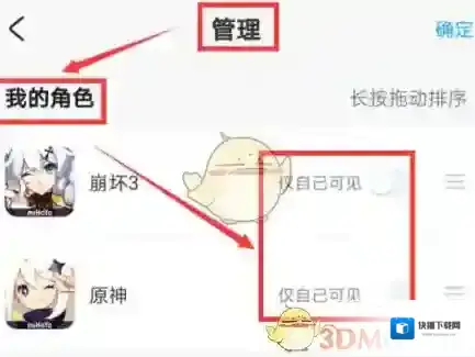 4、如果你不想让别人在米游社查看你的游戏角色,可以去个人主页-管理角色-将角色设置为仅对自己可见。