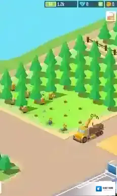 3、雇佣完工人后需要解锁运输方式,点击右上角的按钮可以解锁卡车运输木材。