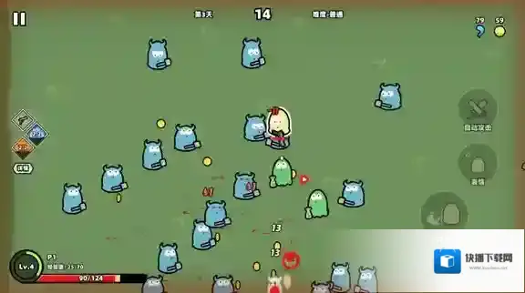 5、全部选好后就会正式开始,滑动屏幕可以控制角色移动,点击右边攻击按键可以自动攻击。