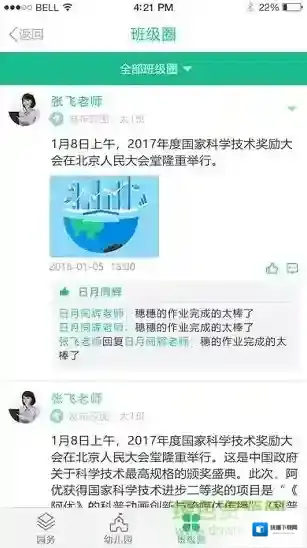 食谱、公告、活动、班级动态一键发布,家长们都能看见,还可以转发哦~