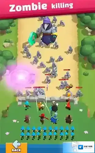 1、战斗时,操控英雄释放紫色范围技能,清理前方敌方(如灰色士兵),为部队开辟路径。