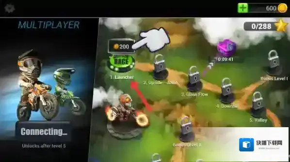 1、单人闯关模式:从初级山地赛道开始挑战,逐步解锁高难度关卡,完成三星通关目标可获取钻石奖励与改装蓝图。