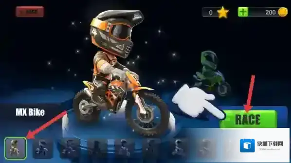 3、自定义装扮系统:可更换骑手的头盔、服饰与摩托车贴纸,打造个性化外观,还能为车辆喷涂渐变色彩与反光特效。