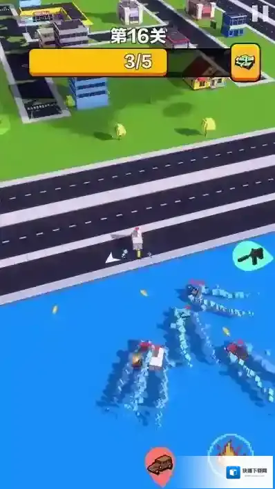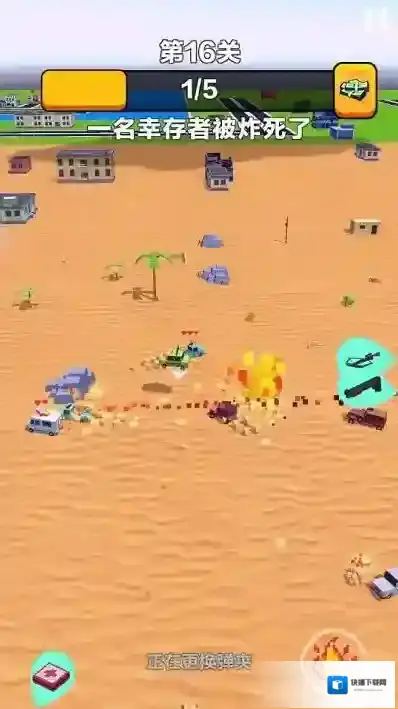 3、关卡推进第2关,操控汽车在道路战斗,消灭敌人如其他车辆,完成0/3目标,注意躲避爆炸,保护幸存者,推进关卡。