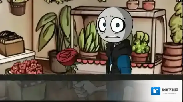 1、这是游戏的初始界面,画面中的角色是Peter,呈现了他手持玫瑰的形象,界面有【开始】按钮,属于开始阶段的场景,用于引导玩家开启剧情互动内容。