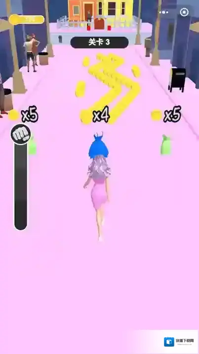 1、进入游戏操控小姐姐在街道赛道行进,沿途快速拾取锤子剪刀水管等武器道具,同时躲避路障与坏人的初始骚扰。