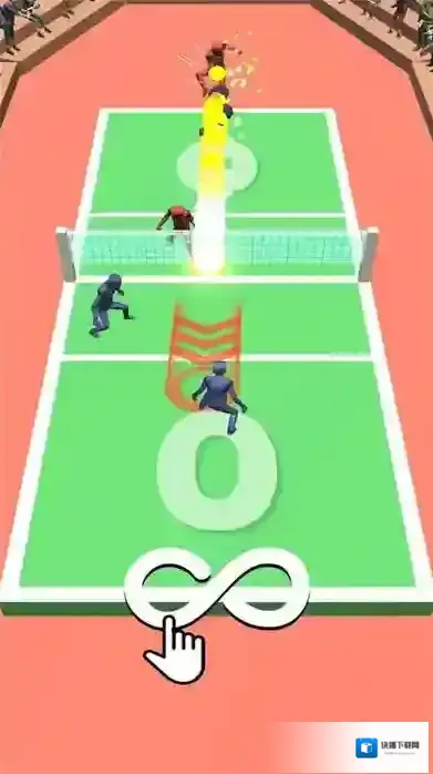 2、操作方式玩家操控红蓝阵营角色,依据箭头、∞符号指引,点击、滑动屏幕完成接球、击球,与对手竞技。