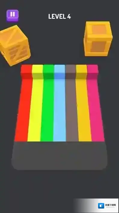 2、关卡玩法进入LEVEL4、5等关卡,需折叠彩色长条、方块,按箭头指引移动拼接,组合成目标形状,考验空间思维。