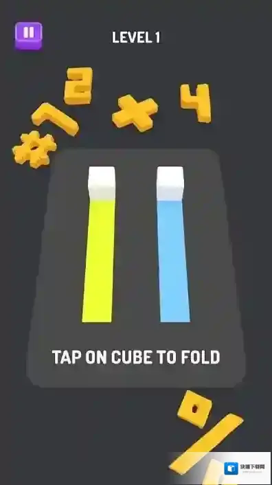 3、核心机制通过折叠操作,让分散方块长条契合,完成关卡,利用界面指引,调整方块位置达成目标。