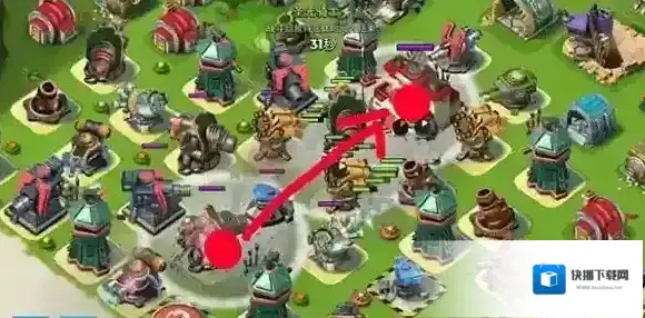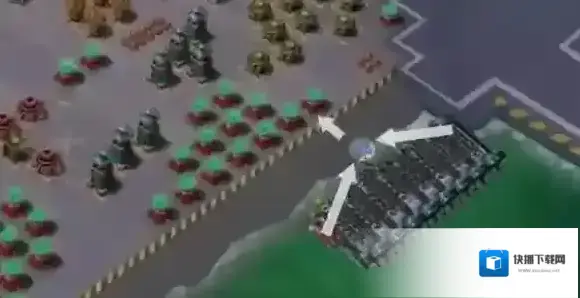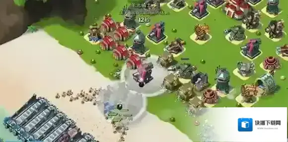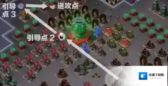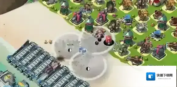 登陆:在岸边选择一个点集中插旗登陆(注意插旗速度),同时释放烟雾弹覆盖插旗点前方,确保妹妹们不受压岸防御建筑攻击。