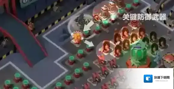 面临一个建筑生命值增加了1077%的高血量圆锥阵型,图中对火箭炮手构成威胁的远程群体伤害防御建筑仅有一个火箭发射器。