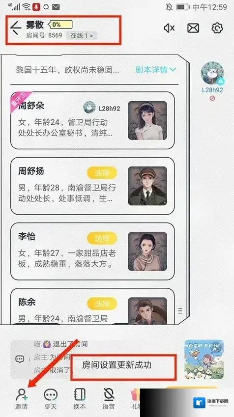 4. 返回剧本房间主界面,你会看到下方弹出提示房间设置更新成功。