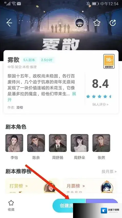 1、打开我是谜游戏,挑选好所需的剧本后,点击屏幕下方的创建房间选项。
