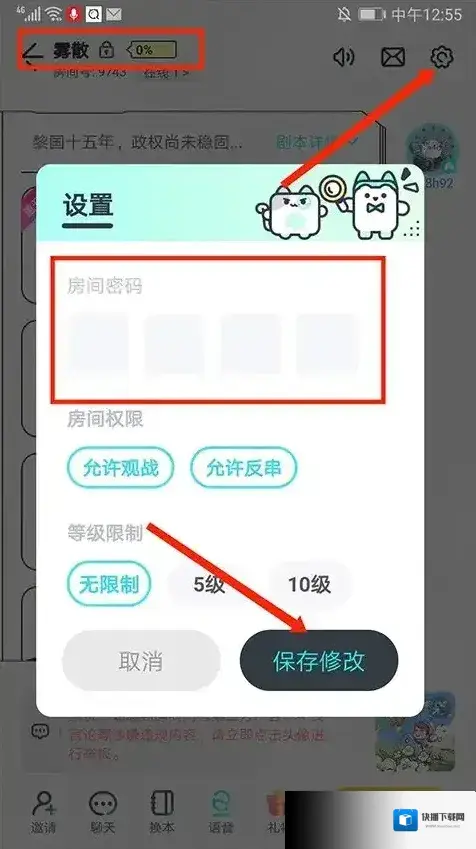 可以看到左上角剧本房间状态显示有一个锁图标,接着,在房间密码选项中删除密码,并点击保存修改。
