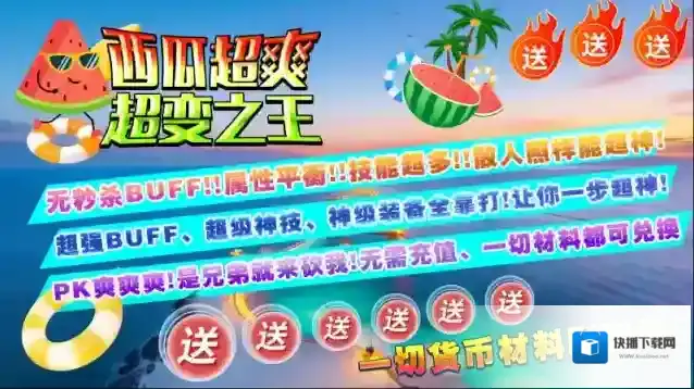 西瓜超爽超变之王,195神器超变版本,上线直接免费获得群体切割、自动回收等超爽功能!本服没有卡点、秒下大陆,无秒杀BUFE,属性平衡,散人也可超神,花时间直接变大哥!游戏内所有的货币全部可以通过打怪获得,一切货币材料刷到爆!亿万切割、亿万血量、亿万攻击、千倍爆率等超爽数值任你体验,人人皆可超神!