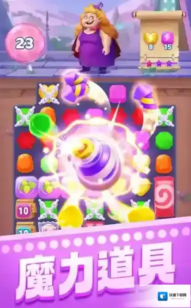 3、通过移动相邻图案,让三个相同图案连接在一起即可消除,成功消除目标图案时将会对女巫造成伤害。