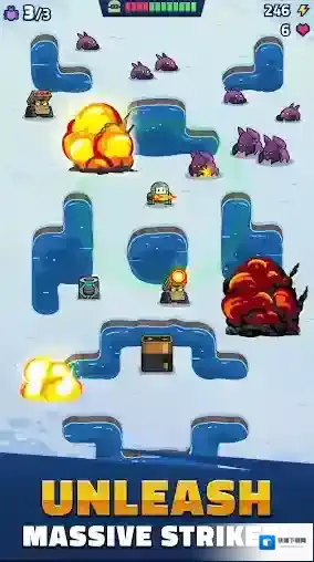 1、主线战役:超过四十个精心设计的关卡,引导玩家逐步掌握塔防策略,每个关卡有独特的地形与敌人波次,帮助玩家优化战术。