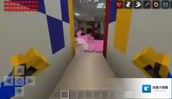 2、遇绿色长手怪物(类似波比角色),用左侧摇杆移动,避开攻击,寻找武器。