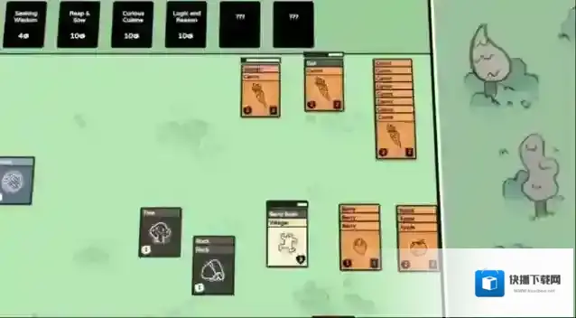 游戏界面下方设有倒计时,当时间结束后,黄色卡牌将需要消耗指定的食物。