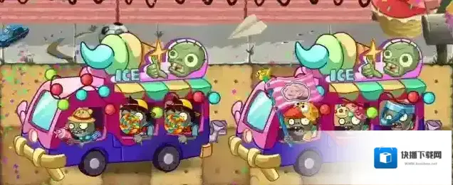 1、 不同的冰淇淋车搭乘的僵尸不同,出现的关卡也不同;