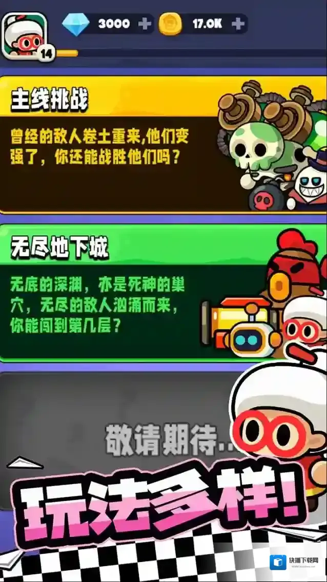 由专业团队精心打造的卡通风格的地牢场景更加神秘,玩家可以自由挑战。